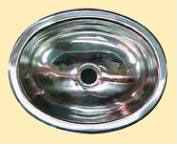 Polar Ware Model 118-1 self-rimming oval sink has mirror finish. Depth: 5". Drain: 11/4" for C.O. plug only. Cut out to shape. One year warrant